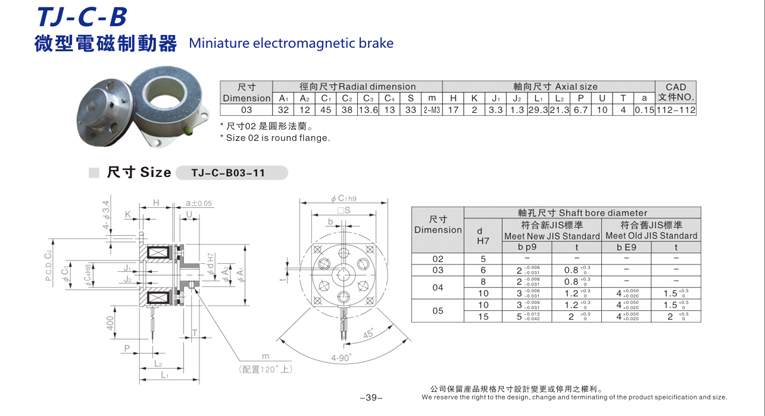 該型微型電磁制動器(TJ-C-B)基本設計與微型電磁離合器(TJ-C-A)基本相同,是一種高性并且結構緊湊的微型制動器,其制動能強,最適合高精度定位,可以安裝在小型精密機械品上任何安裝位置,簡單且方便。微型電磁制動器具有安裝快捷、噪音低、制動平穩、耐用等優點,可與微電機配套使用,被廣泛應用于廣泛應用于門機驅動、電動輪椅、倉儲自動控制、自動門、醫療器械、步進電機等自動化機械傳動系統中,起快速停車、安全制動作用。