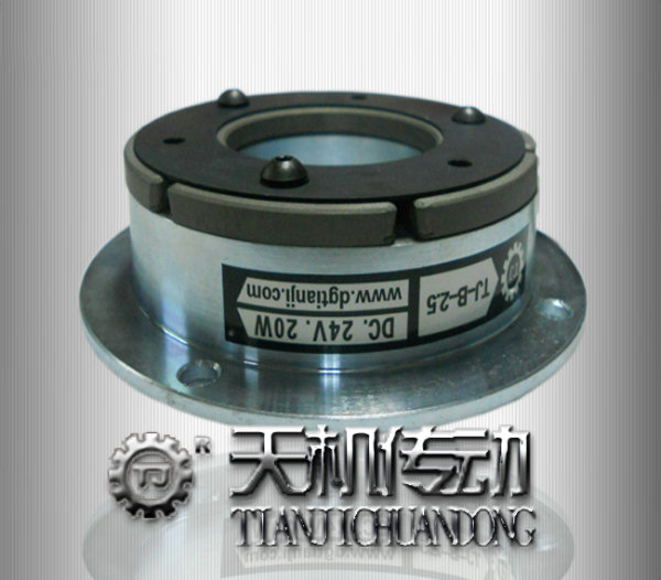 天機傳動直流電磁制動器(標準TJ-B型)由銜鐵(電樞板)、定子、板型彈片、磁性線圈、來令片等元件構成,統一使用DC24V,標準規格0.6-40KG。